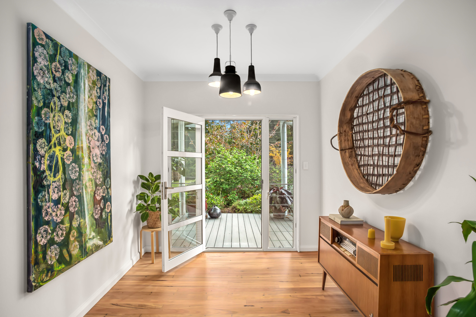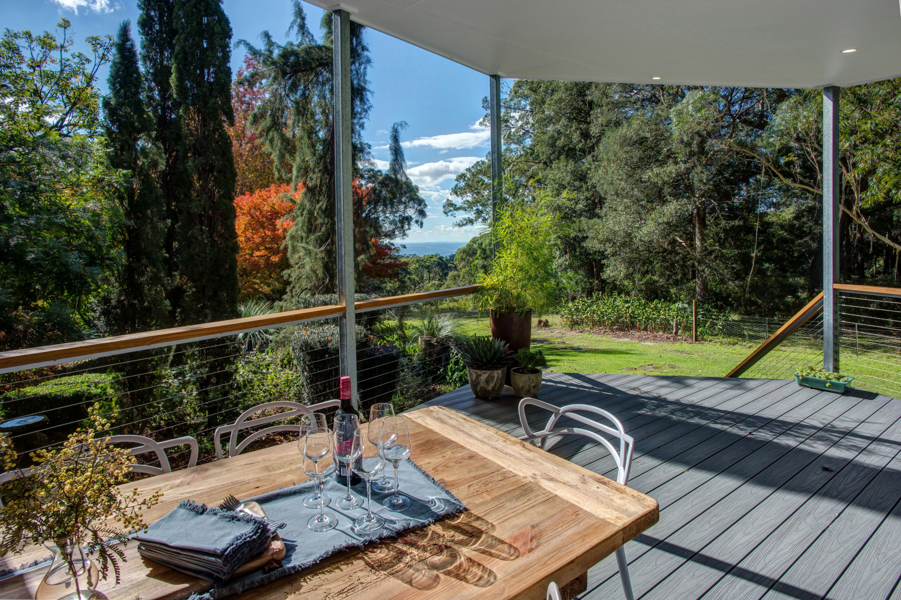 ~ Glowing blackbutt floors and cabinetry, vast expanses of glass provides views from all rooms.