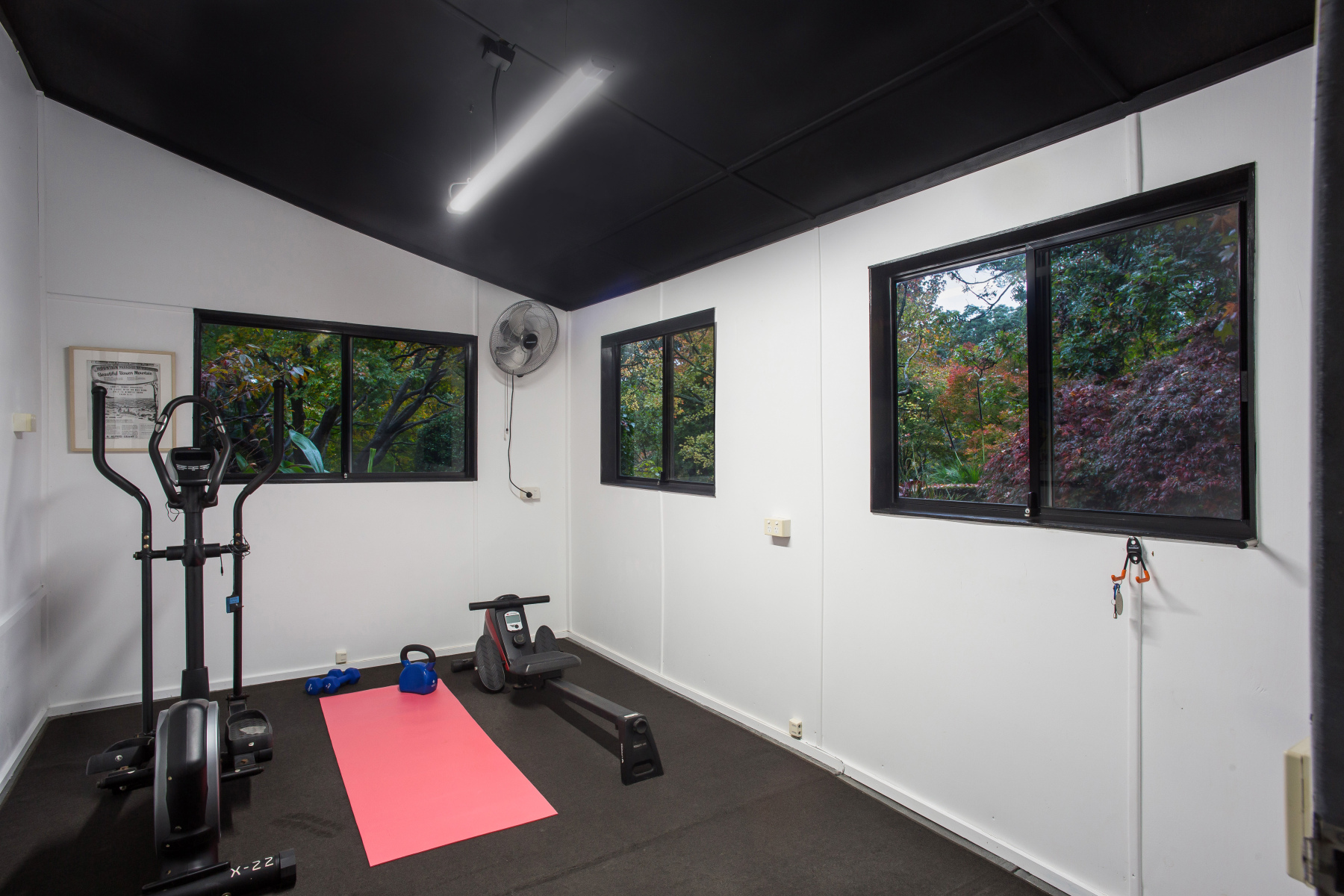 ~ Insulated artist studio or gym with internet cabling.