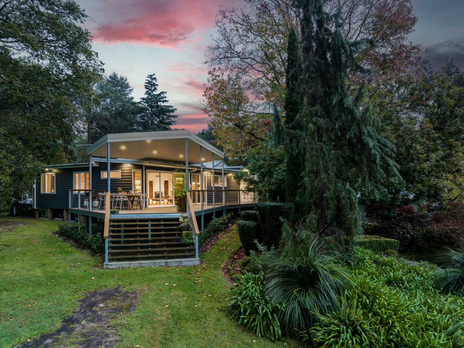 ~ Mature easy care gardens with exotic specimen trees, potable bore water supply.
