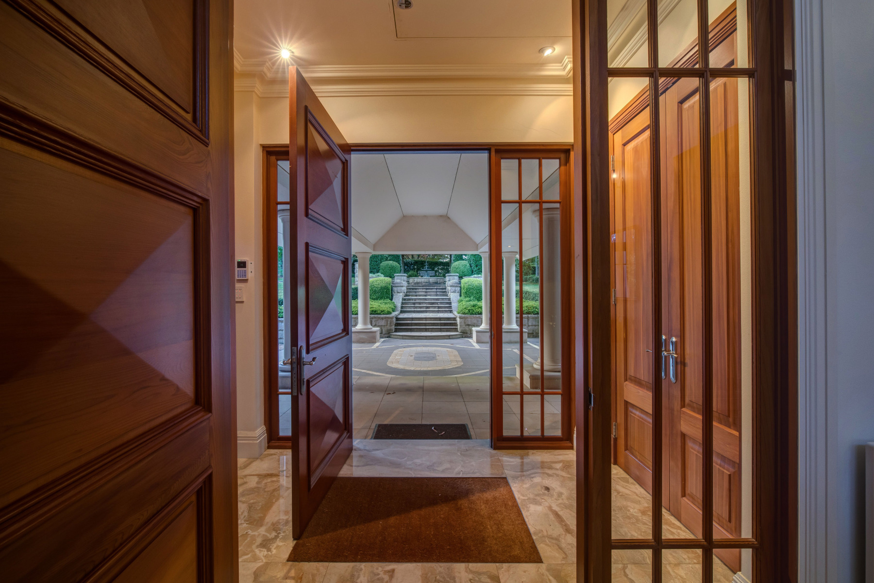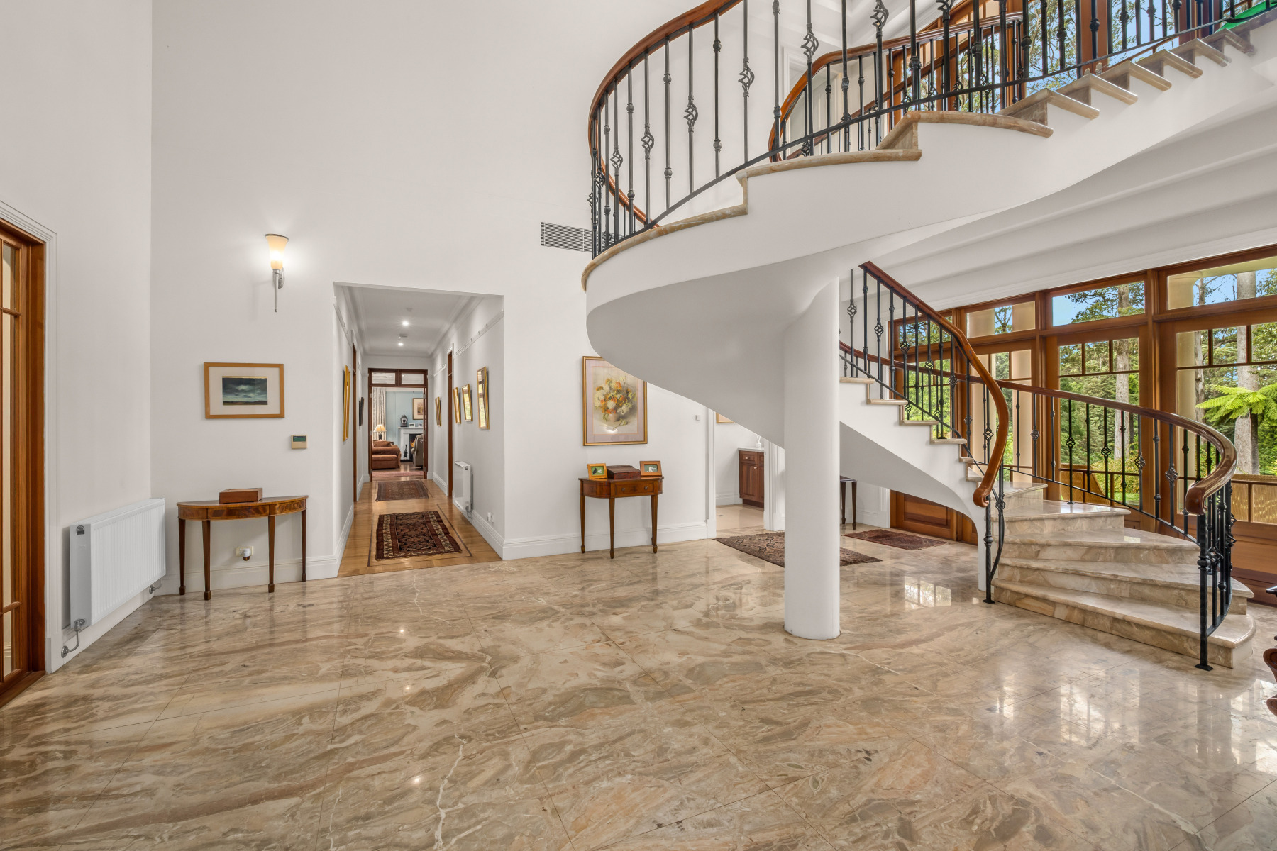 A grand marble staircase leads to four substantial bedroom suites, all with ensuites, including a magnificent master retreat with dual dressing rooms, twin ensuites and a private secondary study.