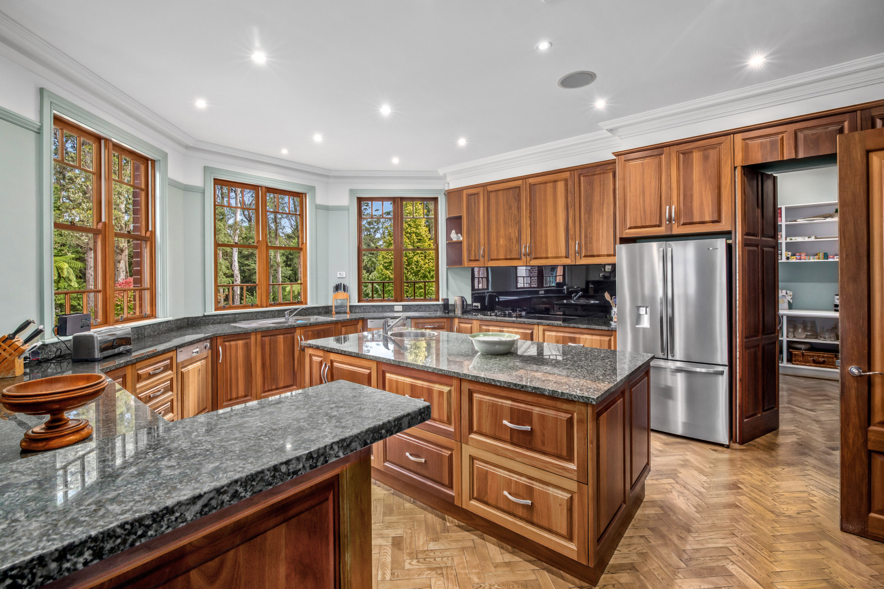 Expansive timber kitchen with butler’s pantry