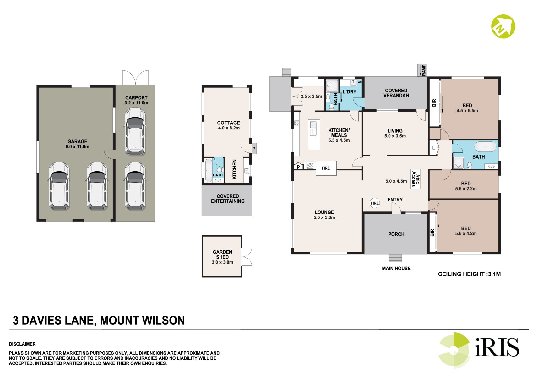 ~ 3 Bedrooms, 2 bathrooms in main house , seperate self contained guest cottage has full bathroom and kitchenette.